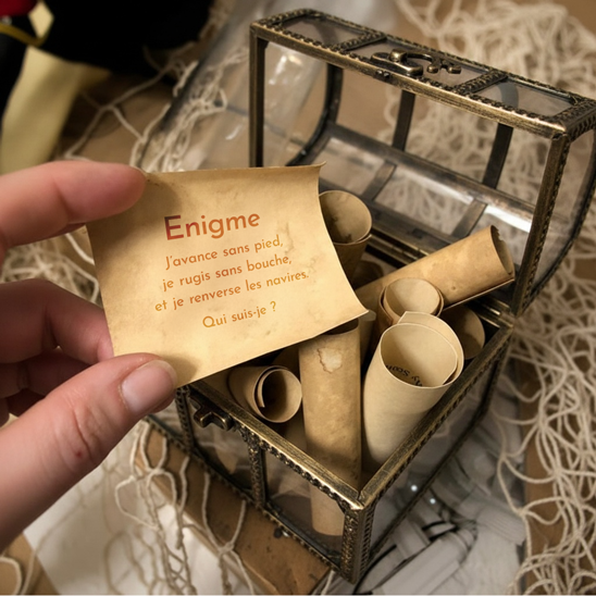 À vous d'être curieux et observateur, car nous avons caché des codes promo et des énigmes partout, visuels produits, descriptions, journal du Capitaine, à toi de les découvrir et devenir le plus riche des pirates !