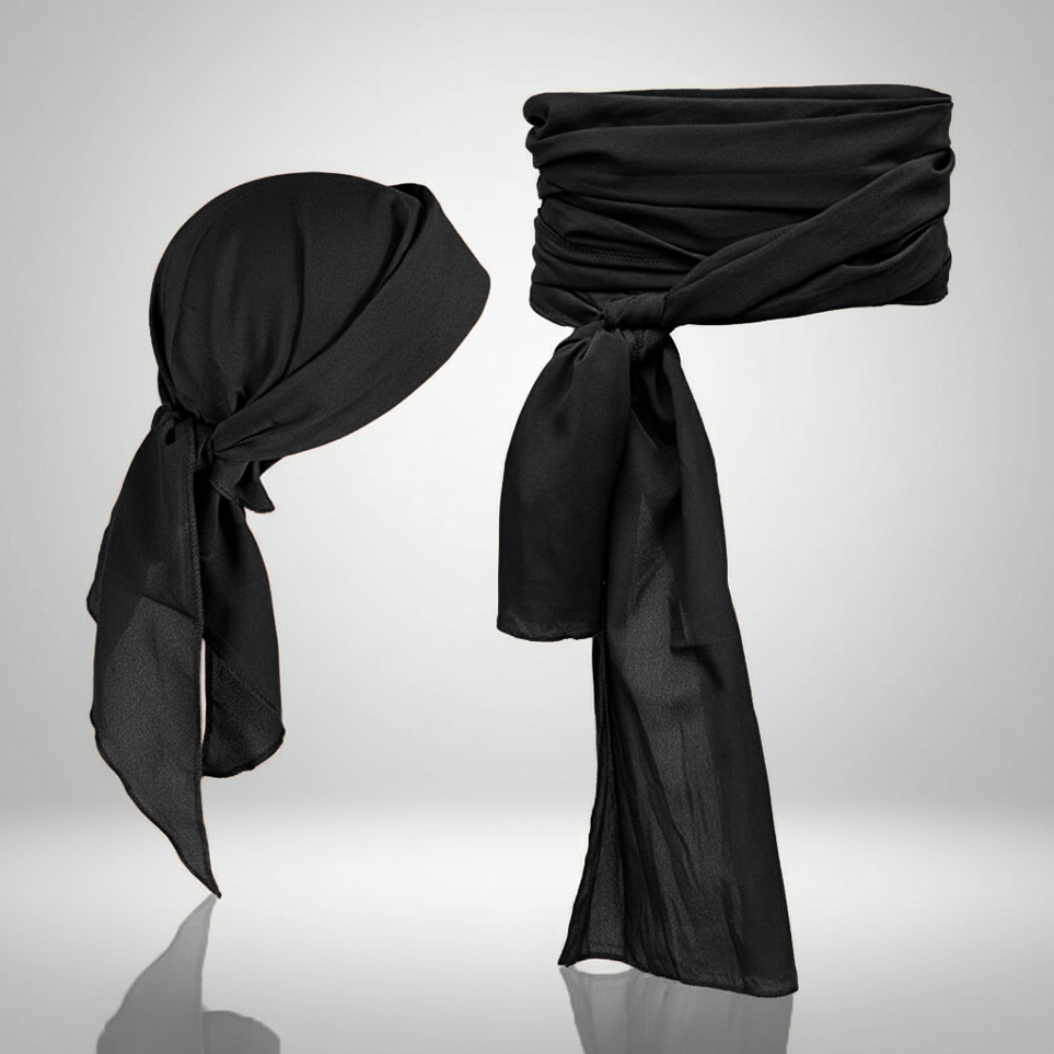 ⚔️ Souples, confortables et ajustables, ces accessoires s’adaptent à toutes les morphologies : le bandeau se noue facilement autour de la tête, tandis que la ceinture longue se porte élégamment à la taille pour un effet réaliste et audacieux.